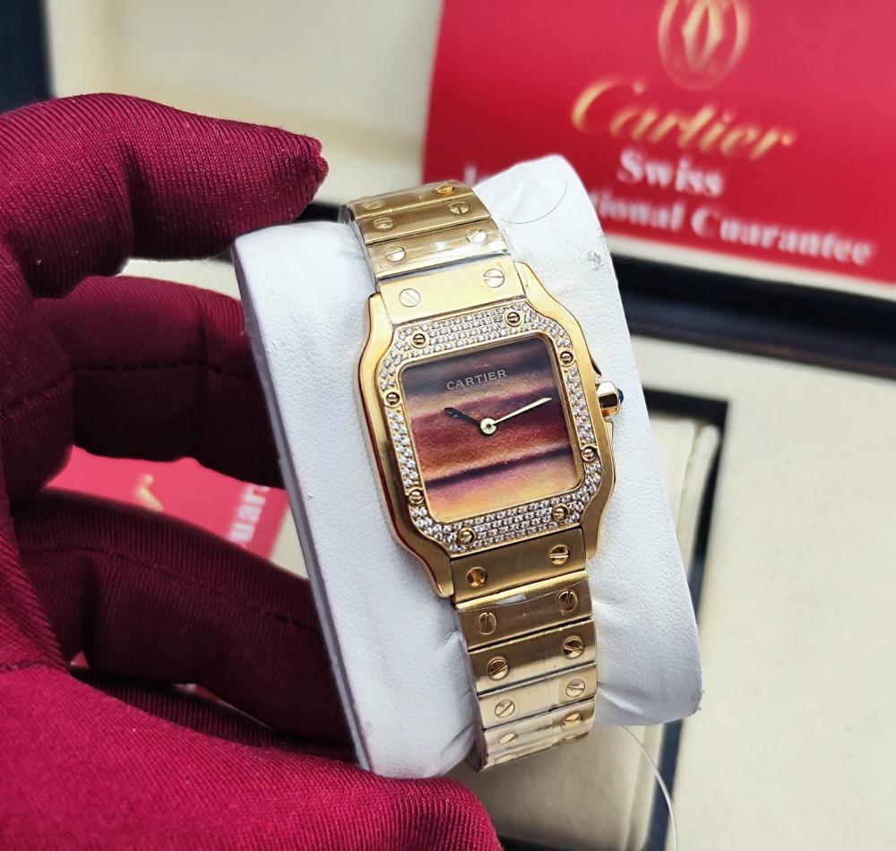 "ساعة كارتير سانتوس النسائية تتميز بمكينة كوارتز تعمل بالبطارية، مقاس 33 مم، وتناسب تمامًا ذوق المرأة العصرية. تتميز بجودة عالية (هاي كوالتي) مما يضمن لكِ مظهراً أنيقاً وفخماً. تأتي مع ملحقات كارتير الأصلية (علبة وكيس هدية) مجانًا. يتم توفير الشحن والتوصيل بشكل مجاني إلى جميع مدن المملكة."