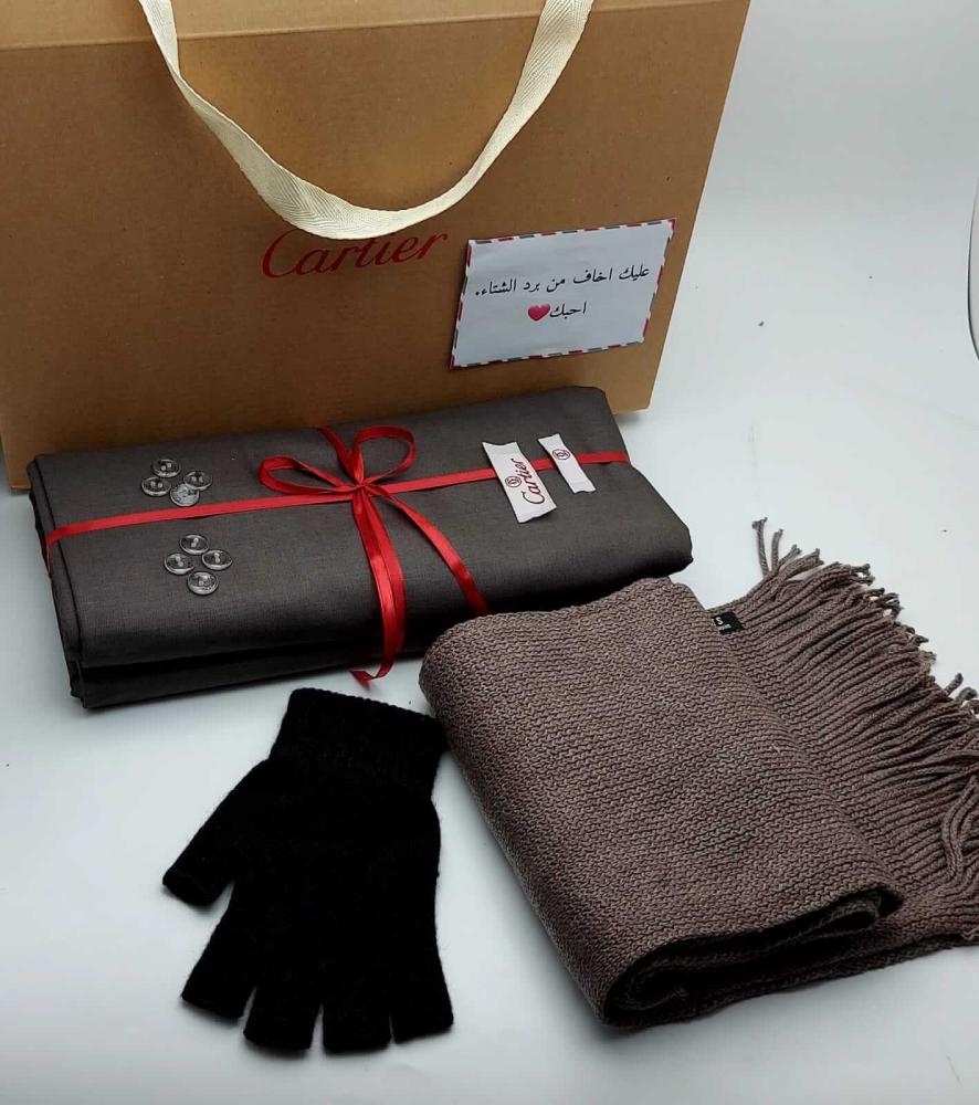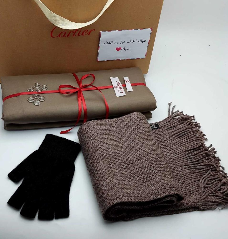 استمتع بجو الشتاء مع بكــــــس الشـــتـــــــاء المميز، الذي يتضمن قماش كارتير الشتوي الفاخر مع الأزرار والشعار. يأتي مع شال شتوي تركي، وخامة ممتازة لضمان الراحة. كما يضم قفازات شتوية لليدين، مما يجعله هدية مثالية. التغليف يأتي أنيقًا كما في الصورة، ويُصنع حسب الطلب مع ضرورة إرفاق صورة اللون عند إتمام الطلب.