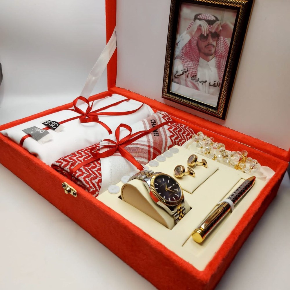 بوكس رجالي شانيل هدية فاخرةقماش شانيل صيفي خامه ممتازةشماغ شانيل مقاس ٥٥ او ٥٨ او ٦٠ساعة ضمان سنة وضد الماء قلم وكبك أنيقتغليف مجانا عبارة حسب الطلب