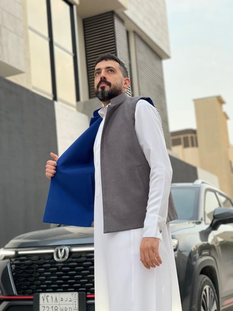 سديري جوخ ازرق مع رصاصي شتوي دبل فيس