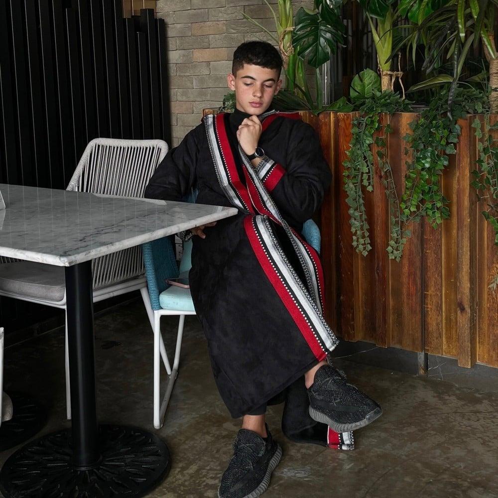 فروة مخملية سوداء بنقشة السدو البدوية المتألقة